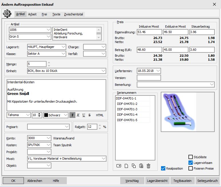 - Zuteilung der einzelnen Auftragspositionen zu Gegenkonten, Kostenstellen und Kostenträgern