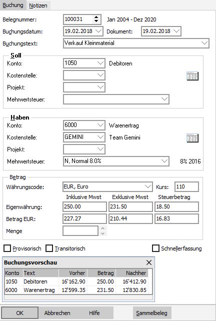 Buchungen können provisorisch oder definitiv erstellt werden.