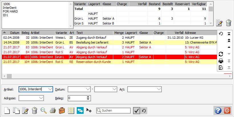 - Varianten, Lagerorte, Klassen, Verfallsdatum