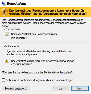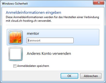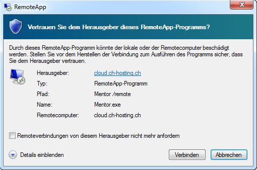 Starten Sie die Datei mentordemo.rdp mit Doppelklick.